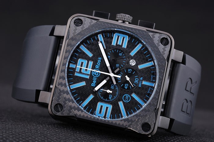 Bracelet: Heat reli f Bell&Ross logo en product code zwarte rubberen band met ion -plated hook-gesp clasp