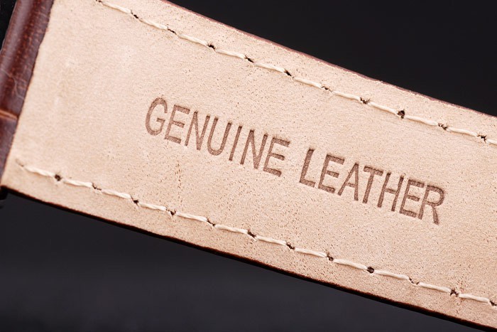 Bracelet: Heat embossed Nomos Glashütte bruine krokodil lederen band met gegraveerde roestvrij stalen haak NOMOS -buckle clasp