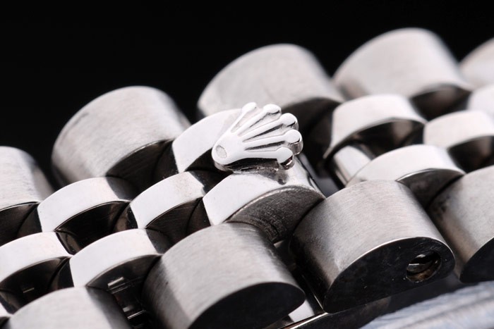 Bracelet: geborsteld en gepolijst roestvrij stalen armband met Rolex gravure verborgen gesp het weergeven van de Rolex logo