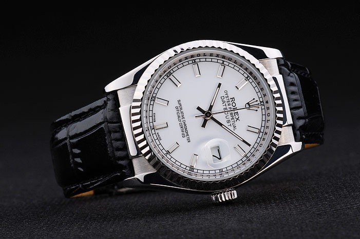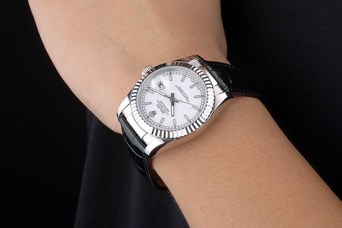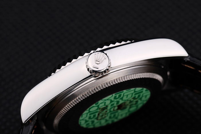 Bracelet: Black krokodil lederen band met Rolex gravure vouwen inzet sluiting tonen van Rolex logo