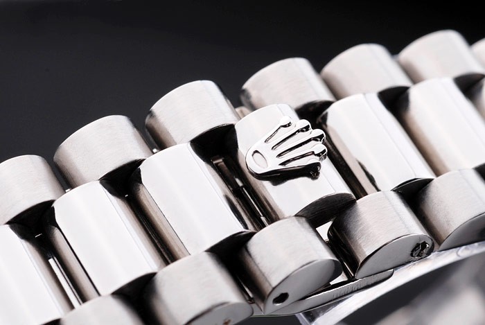 Bracelet: geborsteld en gepolijst roestvrij stalen armband met Rolex gravure verborgen gesp het weergeven van de Rolex logo