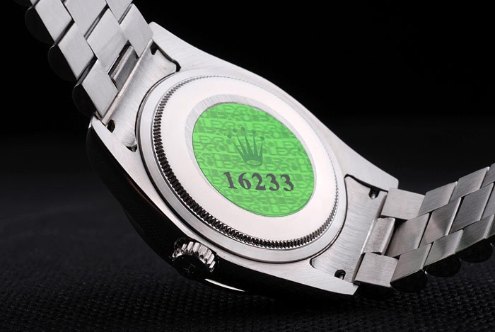 Back: Roestvrij staal push-in zaak terug met groene Rolex logo stamp