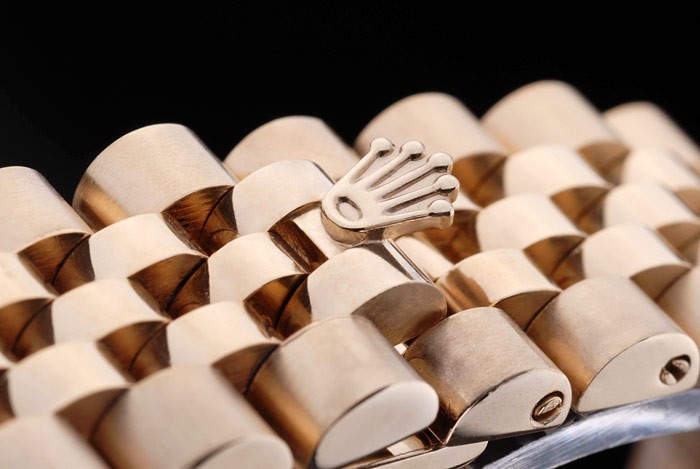 Bracelet: 18k geel goud vergulde roestvrij stalen schakelarmband met Rolex gravure verborgen gesp het weergeven van de Rolex logo