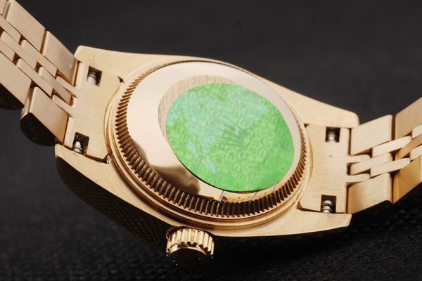 1Back: Duw terug in 18K geel goud met groene Rolex sticker en markings