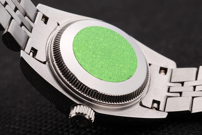 1Back: Push in roestvrij staal terug met groene Rolex sticker en markings