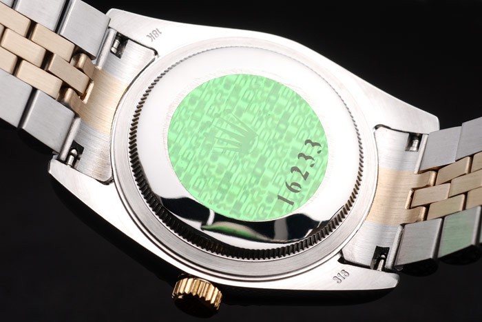 Back: Roestvrij staal push-in zaak terug met groene Rolex logo stamp