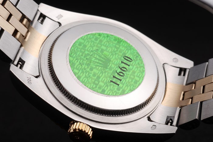 Back: Roestvrij staal push-in zaak terug met groene Rolex logo stamp