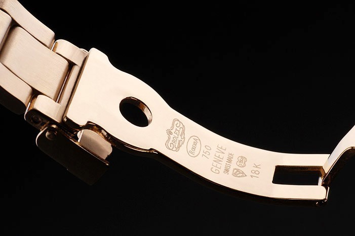 Back: Gouden-gestemde roestvrij staal push-in zaak terug met Rolex engraving