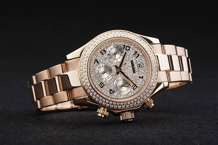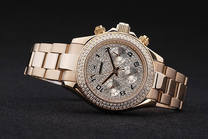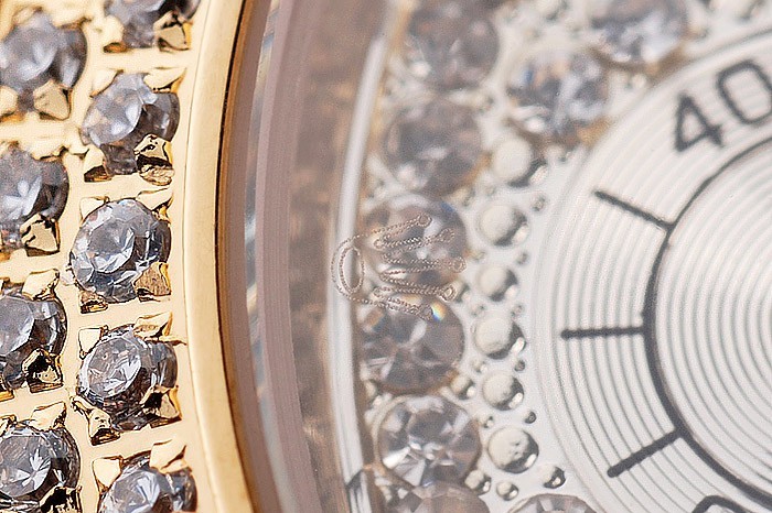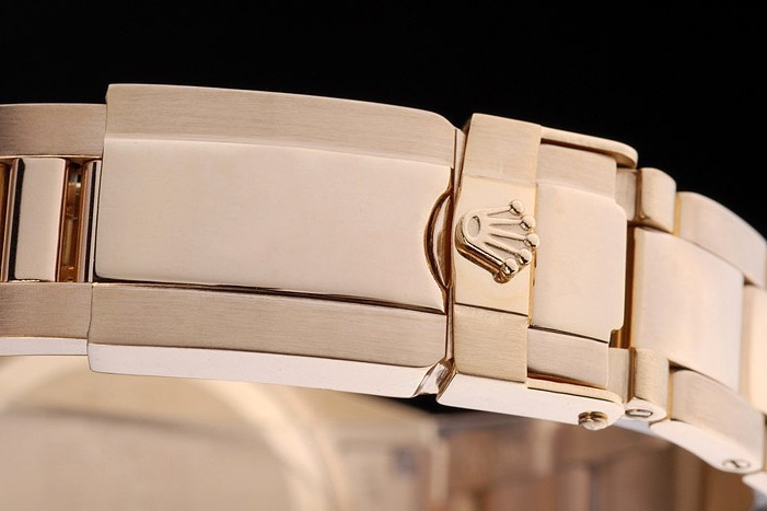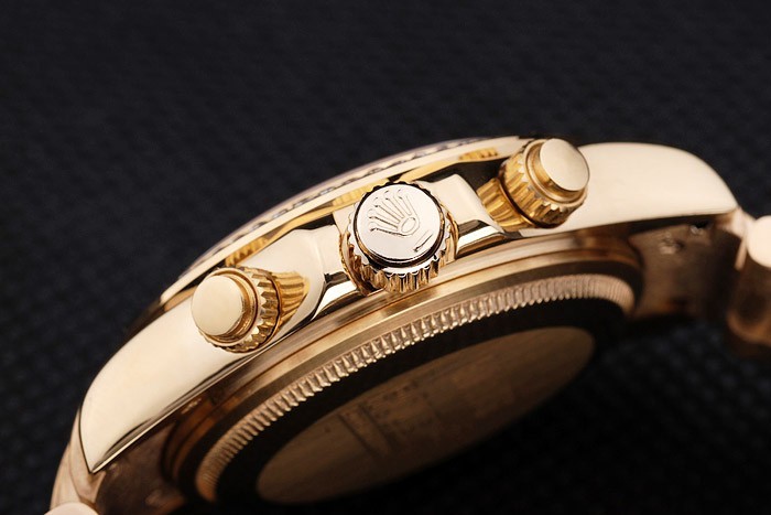 Crown: Gold afgezwakt cutwork kroon met Rolex-logo en twee extra kronen aan weerszijden van it