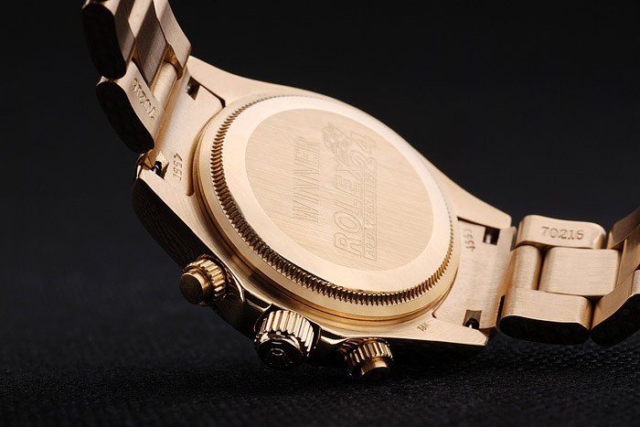 Back: Gouden-gestemde roestvrij staal push-in zaak terug met Rolex engraving