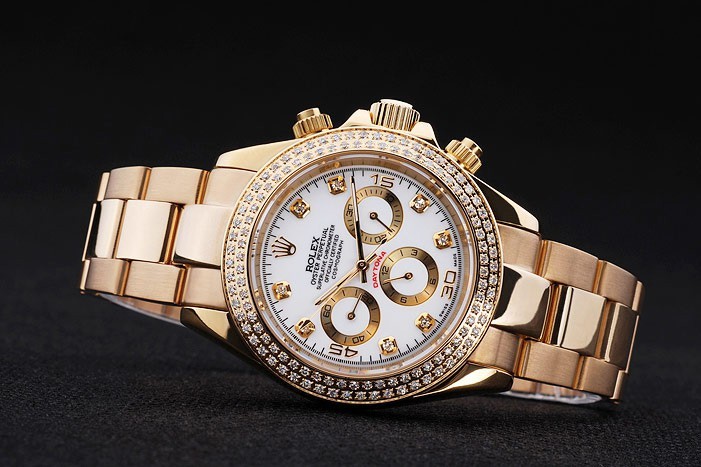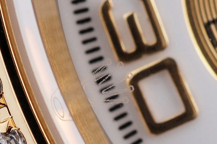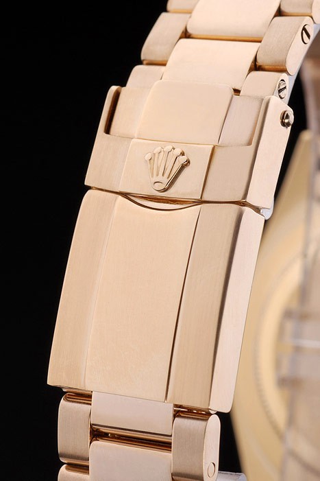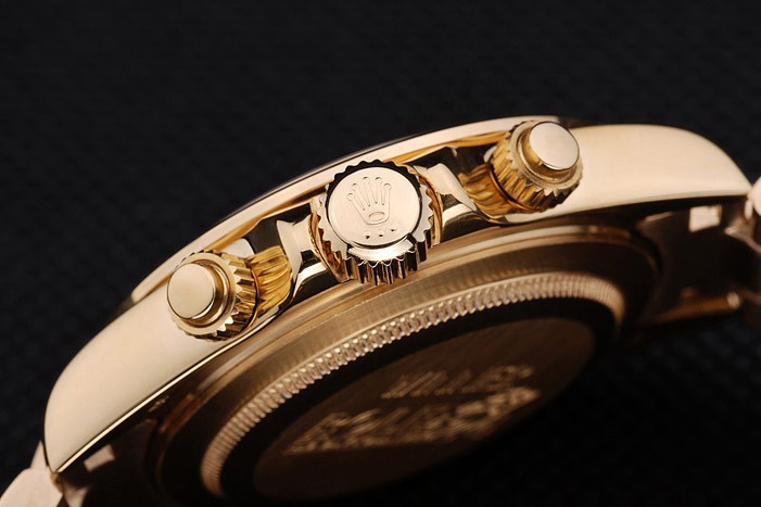 Crown: Gold afgezwakt cutwork kroon met Rolex-logo en twee extra kronen aan weerszijden van it