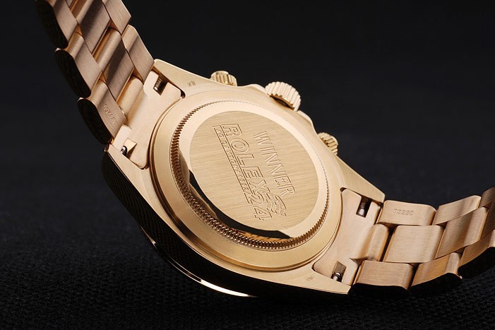 Back: Gouden-gestemde roestvrij staal push-in zaak terug met Rolex engraving