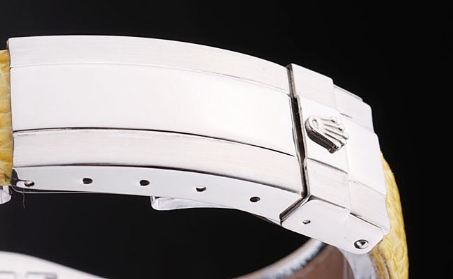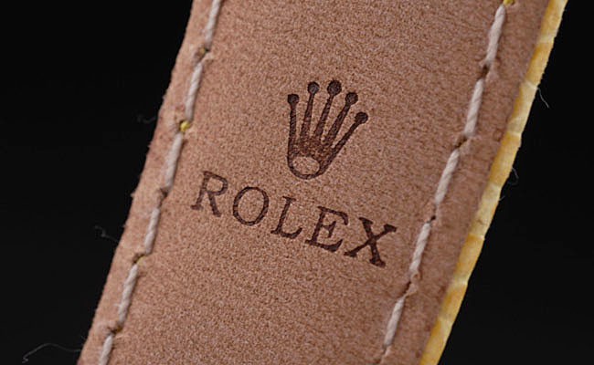 Bracelet: Yellow snake lederen band met Rolex en logo graveren en roestvrij staal inzet sluiting tonen van Rolex logo