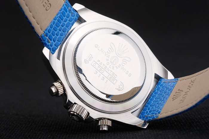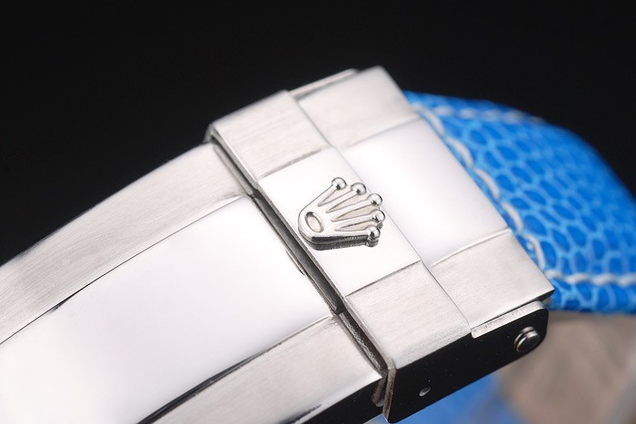 Bracelet: Blue snake lederen band met Rolex en logo graveren en roestvrij staal inzet sluiting tonen van Rolex logo