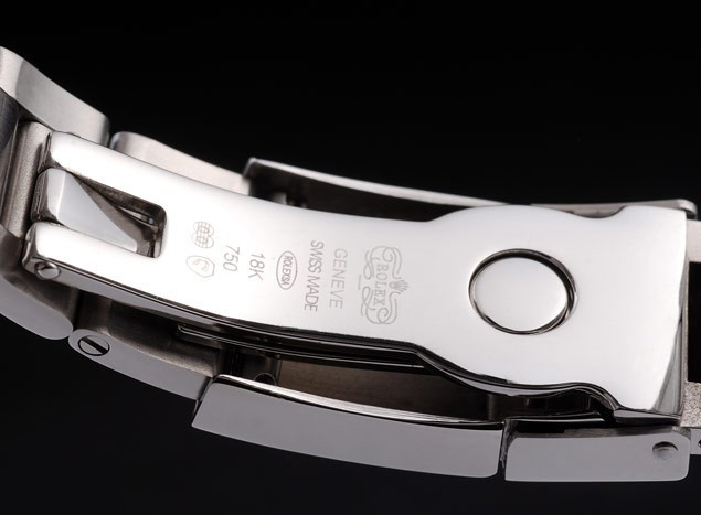 Crown: Ion-plated cutwork kroon met Rolex-logo en kleinere kronen aan weerszijden van it
