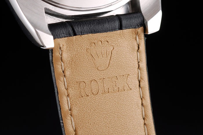 Bracelet: Rolex ge mbossed zwarte krokodillenleren band met gegraveerde roestvrijstalen inzet sluiting met Rolex-logo op top
