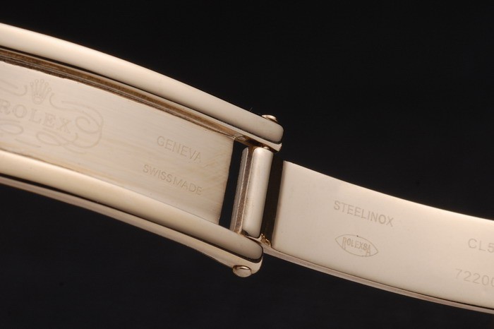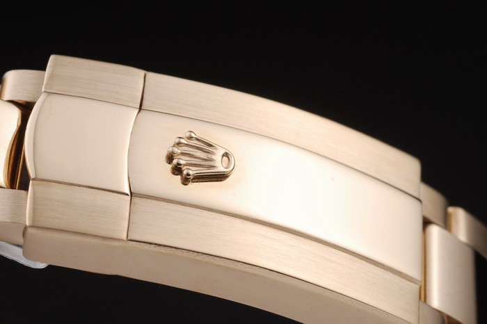 Bracelet: 18k geel goud vergulde roestvrij stalen schakelarmband met Rolex gravure inzet sluiting weergeven van de Rolex logo