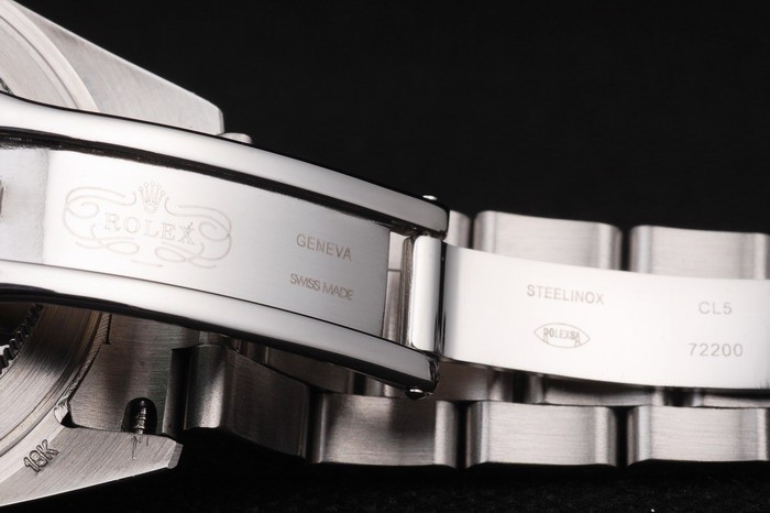 Bracelet: geborsteld en gepolijst roestvrij stalen schakelarmband met Rolex gravure vouwen in gesp het weergeven van de Rolex logo