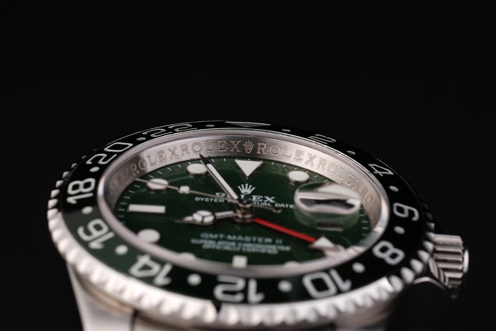 Back: Push in roestvrij staal terug met groene Rolex sticker en markings