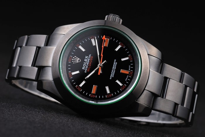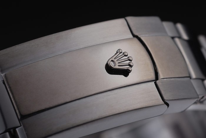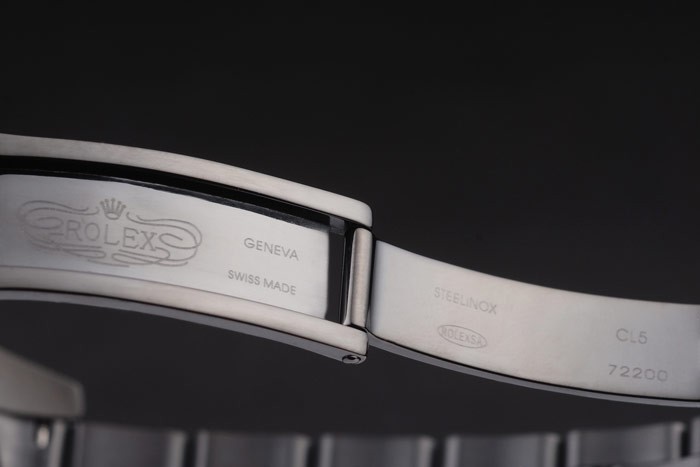 Bracelet: Ion-plated roestvrij stalen schakelarmband met Rolex gegraveerde fold-in inzet sluiting weergeven van de Rolex logo