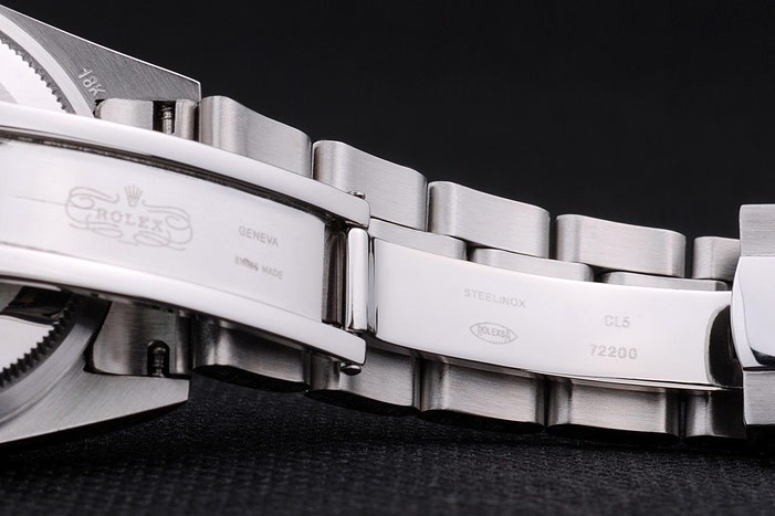 Bracelet: geborsteld en gepolijst roestvrij stalen schakelarmband met Rolex gravure vouwen in gesp het weergeven van de Rolex logo