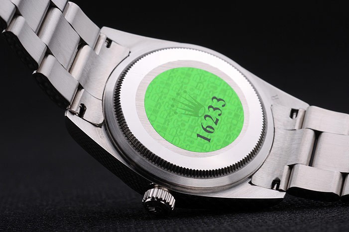 Back: Roestvrij staal push-in zaak terug met groene Rolex graveren stamp