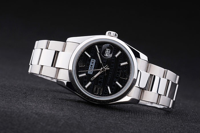 Bracelet: geborsteld en gepolijst roestvrij stalen schakelarmband met Rolex gravure vouwen in gesp het weergeven van de Rolex logo