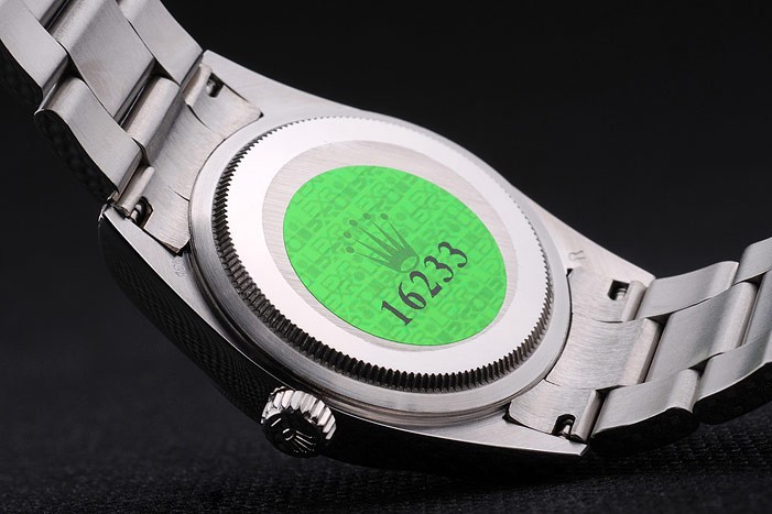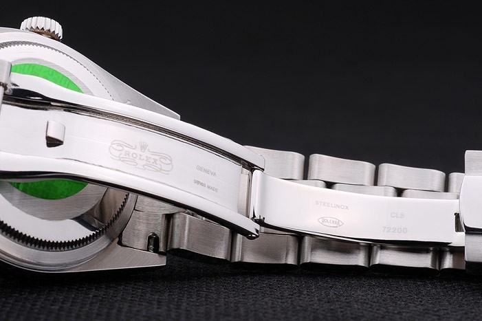 Back: Roestvrij staal push-in zaak terug met groene Rolex graveren stamp