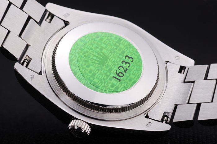 Back: Roestvrij staal snap-in terug met groene Rolex authenticiteit sticker