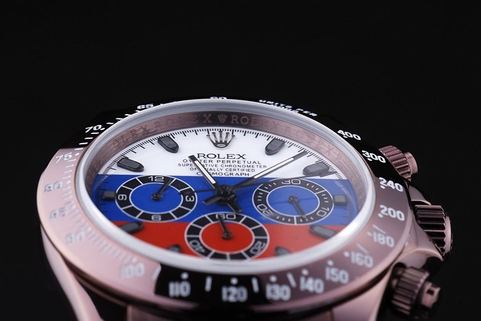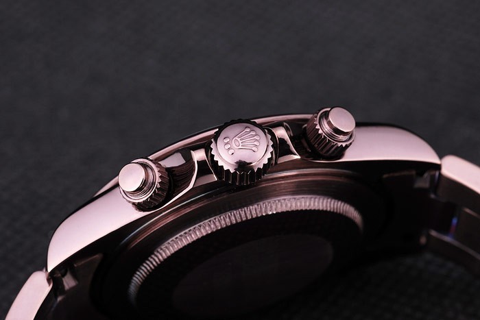 Crown: Rosy bruin roestvrij staal cutwork kroon met Rolex-logo en twee kleinere drukknop cutwork kronen aan weerszijden van it