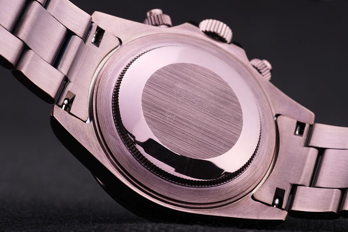 Back: Rosy bruin poedercoating geborsteld roestvrij staal snap-in terug met Rolex inscription