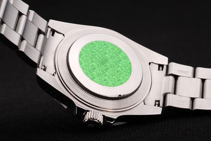 Back: Push in roestvrij staal terug met groene Rolex sticker en markings