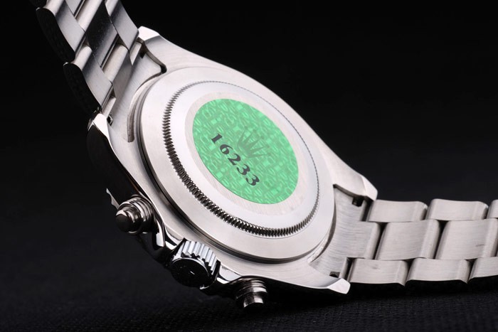 Back: Roestvrij staal push-in zaak terug met groene Rolex graveren stamp