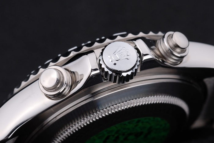 Crown: gepolijst roestvrij staal cutwork kroon met Rolex-logo en twee extra kronen aan weerszijden van it
