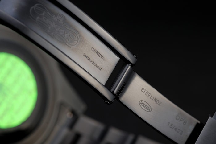 Back: Ion-plated-module terug met groene Rolex authenticiteit sticker