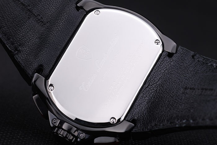Crown: Ion-plated roestvrij staal cutwork kroon met Tonino Lamborghini logo en twee rode glazuur overgoten langwerpig drukknop kronen aan weerszijden van it