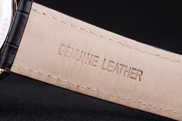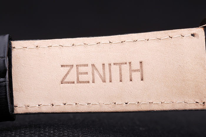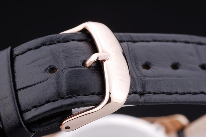 Bracelet: Heat embossed Zenith zwarte krokodillenleren band met rose vergulde hook-gesp clasp