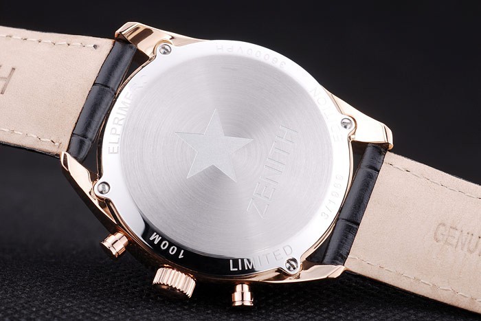 Back: gepolijst roestvrij staal vastgeschroefd terug met Zenith El Primero inscription