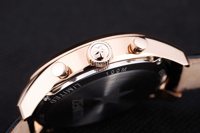 Crown: Rose vergulde cutwork kroon met Zenith ster logo graveren en twee kleinere round drukknop kronen aan weerszijden van it